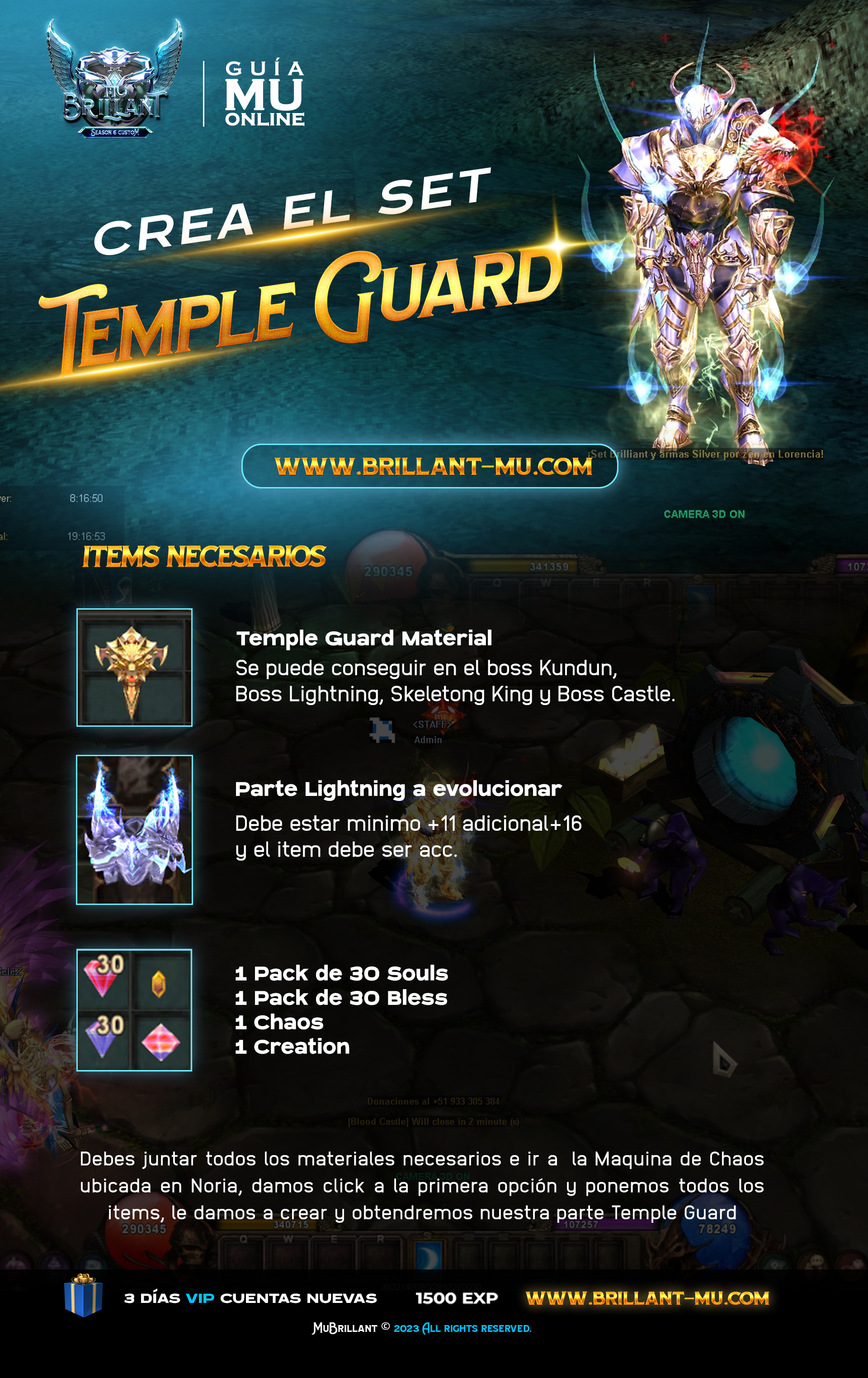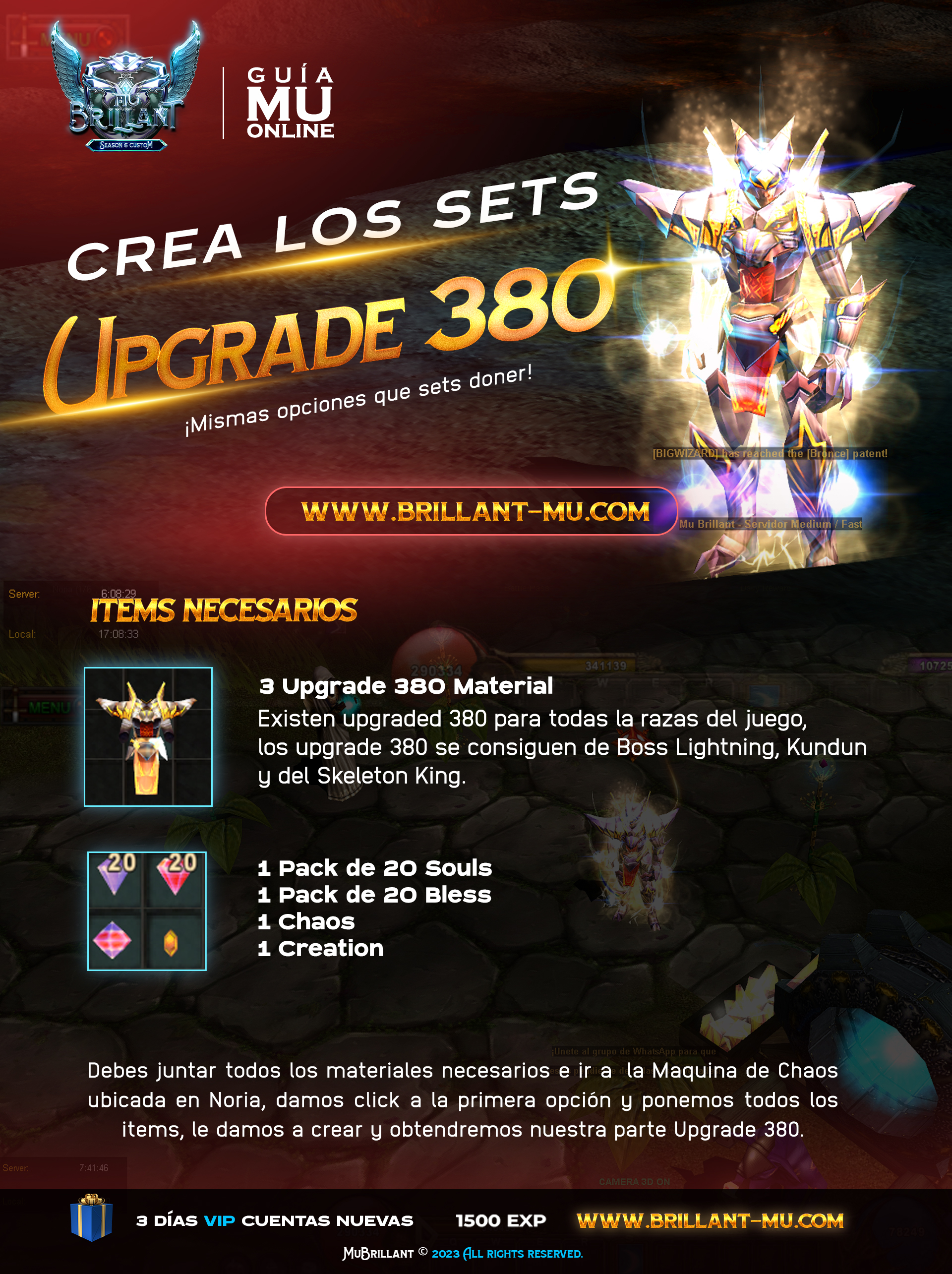 La quest para conseguir los sets de navidad ya esta activa en Lorencia en el npc Santa. Deberán recolectar las letras y formar la frase FELIZ NAVIDAD para poder reclamar uno de los sets, las letras se han puesto en drop del Boss Exodia, Boss Porunga, Blood Castle y en Kubera Mine.